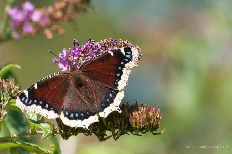 Apparently this butterfly species is one of the most long-lived in North America — they can live up to 10 months. Not only that, but they can over-winter. They go into a hibernation and warm days can bring them out, even in the winter. How’s that for some trivia?